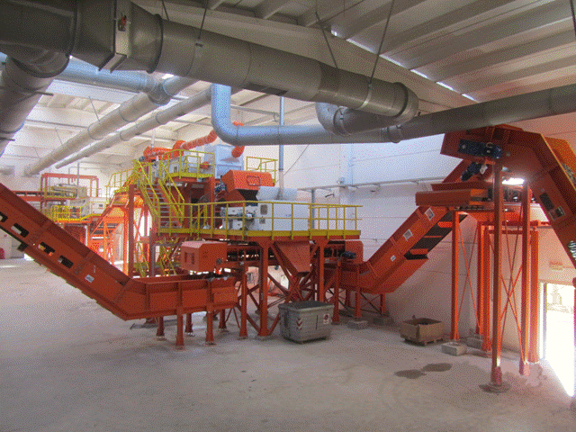 Ha fornito un trituratore di tipo bialbero a due rotori, utilizzato come trituratore primario con funzione di pre-triturazione del RSU, RSA e Rifiuti Speciali non pericolosi, destinati successivamente agli impianti di selezione compostaggio e biostabilizzazione. Ha fornito inoltre due trituratori di tipo monoalbero con un singolo rotore, utilizzati come trituratori finitori con funzione di ri-triturazione del materiale oversize (RSU, RSA e Speciali non pericolosi) proveniente dalla sezione di vagliatura. Il materiale finemente ottenuto da questi ultimi trituratori, oramai definito CSS viene successivamente immagazzinato in silos automatici di accumulo ed estrazione.