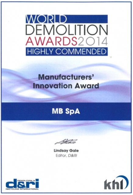Ancora una volta, quindi, la benna frantoio MB-C50 porta a casa un grandissimo risultato che si va ad aggiungere al The Earth & Civil Contractor Awards (premio australiano delle eccellenze del settore movimento terra che ha conferito alla piccola della gamma il PRODUCT INNOVATION AWARDS) e alla menzione speciale per l'Innovazione di prodotto al Samoter 2014 a Verona.