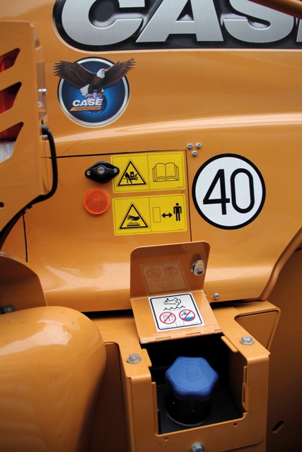 Tra gli accessori deputati alla sicurezza, la disponibilità della telecamera per visione posteriore fornisce una visuale chiara e priva di ostacoli sul retro della macchina. Altra caratteristica peculiare della macchina è la protezione posteriore creata ad hoc in collaborazione col cliente. A causa della protezione addizionale posteriore i tecnici della succursale Case di Unna hanno dovuto spostare lo sportellino del serbatoio, non più accessibile dal retro. Ora si trova su un lato della macchina, sopra il serbatoio di AdBlue.
