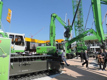 Al bauma, con l'818 Sennebogen ha presentato l'escavatore di movimentazione più piccolo, da ora disponibile anche in versione elettrica. Dotata di un motore elettrico da 90 kW e di un sottocarro mobile, la macchina unisce la massima flessibilità ai vantaggi della trasmissione elettrica idraulica. Oltre a ciò, il tamburo avvolgicavo cilindrico necessario viene montato direttamente sul sottocarro. In questa configurazione, con l'attrezzatura lunga 10 m comprendente la benna selezionatrice, l'818 è particolarmente indicato per attività di smistamento e di scarico all'interno di capannoni. Le dimensioni di base compatte della macchina, con una larghezza di 2,50 m e una lunghezza di 4,36 m, offrono ulteriori vantaggi anche in ambienti stretti. Che si tratti di smaltimento o riciclo dei rifiuti o della movimentazione di rottami, ovunque siano necessari movimenti rapidi di lavoro, come ad es. nel caso del caricamento di impianti o di autocarri, il pregiato sistema a un cilindro sorprende per la rapidità dei cicli e l'elevata affidabilità.