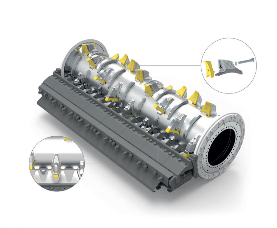 Il sistema di taglio RC è stato sviluppato appositamente per la triturazione primaria e grossolana di diversi flussi di materiale e per portate elevate che possono raggiungere le 70 t/h. L’esclusiva forma dei denti garantisce un’introduzione aggressiva del materiale. I coltelli e i denti statore, una volta smontati, possono essere riportati sul banco. Con il sistema di taglio RC si ottengono pezzature che variano dai 100 ai 300 mm.