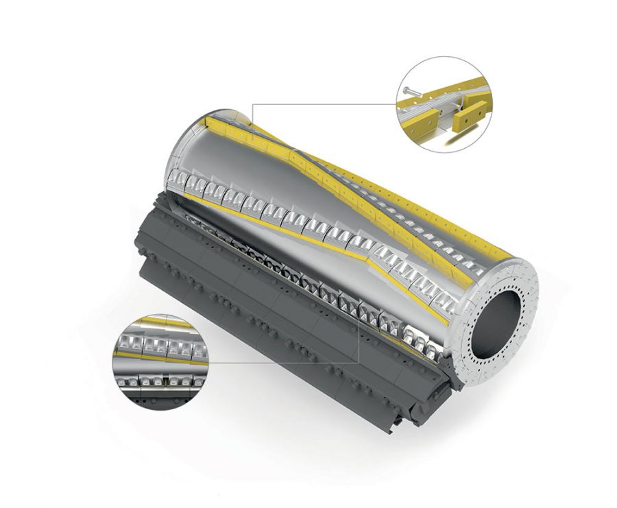 Il sistema di taglio C è stato concepito per il trattamento in un unico passaggio di diversi flussi di materiale allo scopo di ottenere una pezzatura definita. A seconda delle esigenze e della pezzatura richiesta, sono configurabili fino a 4 file di coltelli sul rotore che garantiscono portate elevate. Le piastre di taglio e la barra statore ad uso quadruplo possono essere sostituiti facilmente e rapidamente. Con il sistema di taglio RC si possono ottenere pezzature da 45 a 150 mm.