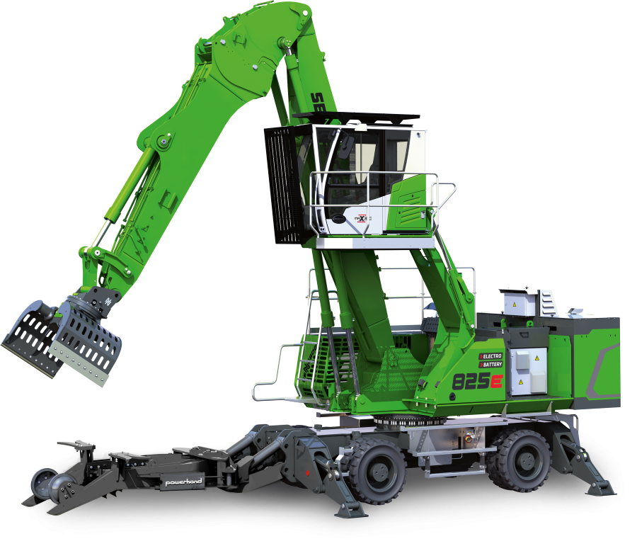 L’825 Electro Battery con Powerhand e Vario Tool completa la gamma delle macchine per il riciclo presentate a IFAT. Il movimentatore elettrico a batteria, esposto per la prima volta ad una fiera con questa attrezzatura, è un maestro della flessibilità con il suo sistema di cambio rapido completamente idraulico e multifunzionale. Vari accessori come cesoie per rottami e pinze possono essere utilizzati e possono essere sostituiti molto facilmente dall'autista dalla cabina in tempi brevi. Il moderno 825 E con uno sbraccio di 14 metri e un peso operativo di 30,4 tonnellate funziona senza restrizioni grazie al Dual Power Management sia in modalità batteria che con alimentazione via cavo ed è quindi estremamente pratico per l’industria del riciclaggio, con l'attrezzatura Powerhand soprattutto per il riciclaggio delle auto.