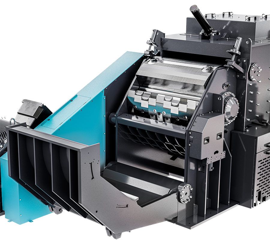 Per ridurre al minimo la fuoriuscita di polvere durante il processo di triturazione, la macchina è provvista di un rivestimento che il tecnico può rimuovere con poche semplici operazioni prima di effettuare gli interventi di assistenza. Un portello con apertura verso il basso consente un rapido accesso al rotore. Nel portello è integrata anche una piattaforma di manutenzione. Essa consente di effettuare gli interventi di assistenza in tutta comodità e sicurezza. Un encoder rotativo assicura il sollevamento, l’abbassamento e lo smorzamento ottimali del rullo di alimentazione superiore in modo idoneo al materiale in entrata. L’azionamento del rullo di alimentazione superiore è collocato all’interno. Sia la lubrificazione sia il controllo della temperatura avvengono in modo automatico.