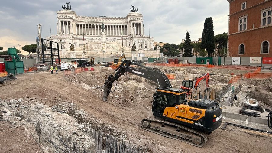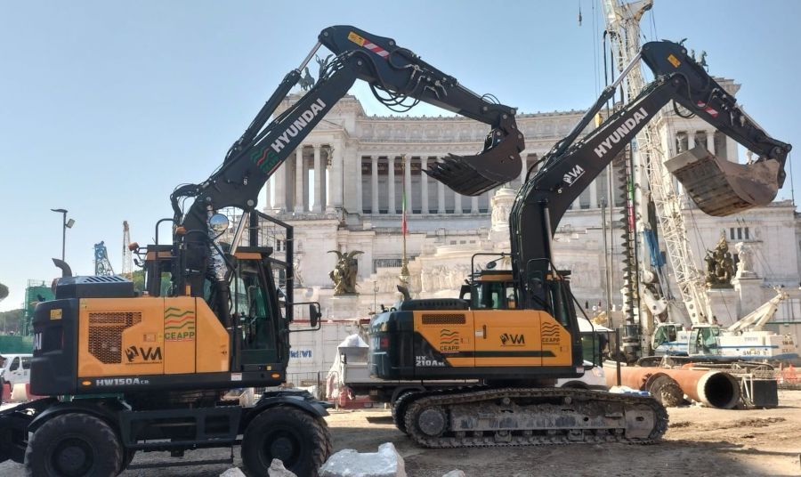 Nel cantiere della linea C di Piazza Venezia sono presenti tre escavatori Hyundai, i modelli HX210A e il modello HW150 A che si stanno occupando degli scavi per la realizzazione delle solette di copertura. Sono macchine performanti, sicure e precise. Prima dell’acquisto le abbiamo testate e confrontate con modelli simili di altri competitor ma ci siamo resi conto che, rispetto agli altri mezzi della concorrenza, gli escavatori Hyundai offrono ingombri minori, una maggiore stabilità e prestazioni elevate. Inoltre, avendo due cantieri importanti come quelli di Fori Imperiali e Piazza Venezia, l’escavatore gommato può spostarsi con grande facilità e senza problemi da un cantiere all’altro, senza dover per forza ricorrere ad un carrellone che comporterebbe dispersione di tempo”, ha dichiarato Fabio De Pellegrin.