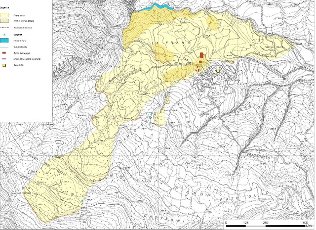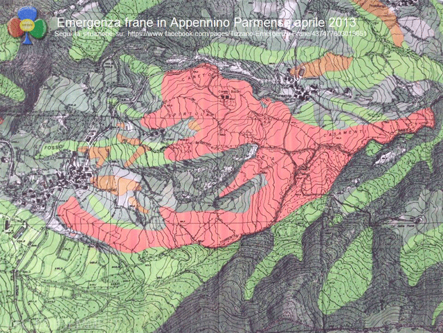 Nella figura 4 si può vedere lo sviluppo che la frana ha avuto nella parte terminale che si è propagata lungo l’incisione del Rio Bardea, con avanzamenti pari a 20 m/giorno. La componente prevalente della frana è quella di colata. La frana è monitorata dai servizi tecnici di regione, provincia e comunità montana e dal comune di Tizzano Val Parma, senza dimenticare tutte le associazioni di volontariato presenti assieme alla protezione civile.
