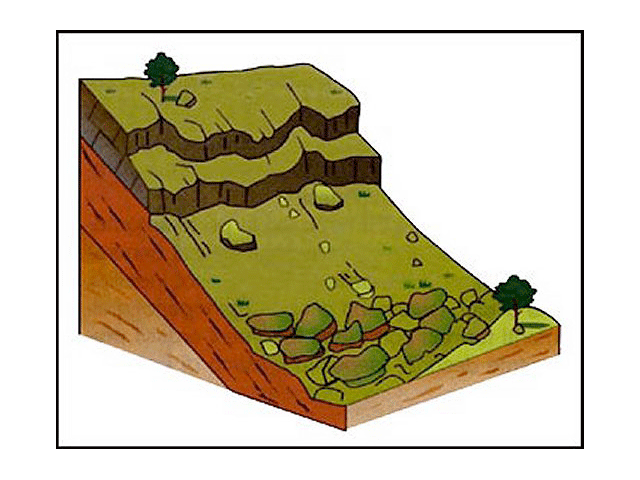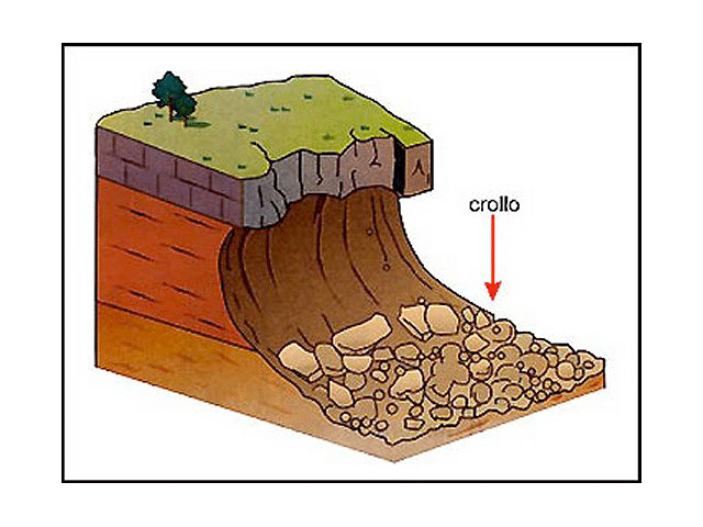 Le frane di crollo sono un distacco netto ed improvviso del materiale. Le frane di scivolamento avvengono lungo una superficie di discontinuità preesistente ed inclinata, generalmente lungo una superficie di strato. Le frane di movimento rotazionali avvengono lungo delle superfici di discontinuità curve con materiali semicoerenti o pseudoceorenti. Le frane di colamento sono dovute all’ammollamento di masse argillose tramite l’azione dell’acqua.